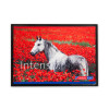 Nachdem der Lipizzaner „Favory Bonavia-5“ der Fotografin in der Gewölbehalle von Schloss Hof ein so traumhaftes Bild geschenkt hatte, wollte sie den schönen Apfelschimmel noch einmal vor einer anderen Kulisse zeigen. Als sie auf der Fahrt zum „Fotoshooting“ an diesem leuchtenden Mohnfeld vorbeikam, war schnell klar, dass der Schimmel hier her gebracht werden musste. Die „intensiv“ rote Farbe der Blumen in Kombination mit dem strahlend weißen Fell des Pferdes – eine Traumkombination. Dem Wallach schien das Feld auch gut zu gefallen. Denn diesmal blieb er vollkommen ruhig und friedlich.
