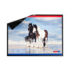 Fast scheint es so, als ob die beiden Tinker „Swansea Boy“ und „Rivlon“ vom polnischen Gestüt Gestüt „Osrodek Rabin“allein auf der Welt wären. Und tatsächlich ging kurz bevor das Foto entstand fast die Welt unter. Christiane Slawik war mit ihrem Team die viele hundert Kilometer von Deutschland nach Polen gefahren, um die Pferde in einer einmaligen Dünenlandschaft zu fotografieren. Doch kaum waren sie angekommen, schlug das Wetter um. Ein sinnflutartiger Regen fiel, der kein Ende mehr nehmen wollte. Für die Umgebung wurde Katastrophen-Alarm ausgerufen. An Fotografieren war nicht zu denken. Doch an eine Abreise auch nicht, denn die Straßen waren nicht befahrbar. Sie saßen fest. Als der Himmel dann wie duch „Zauberkraft“ doch noch aufriss und sich für wenige Stunden die Sonne zeigte, entstand dieses magische Foto.