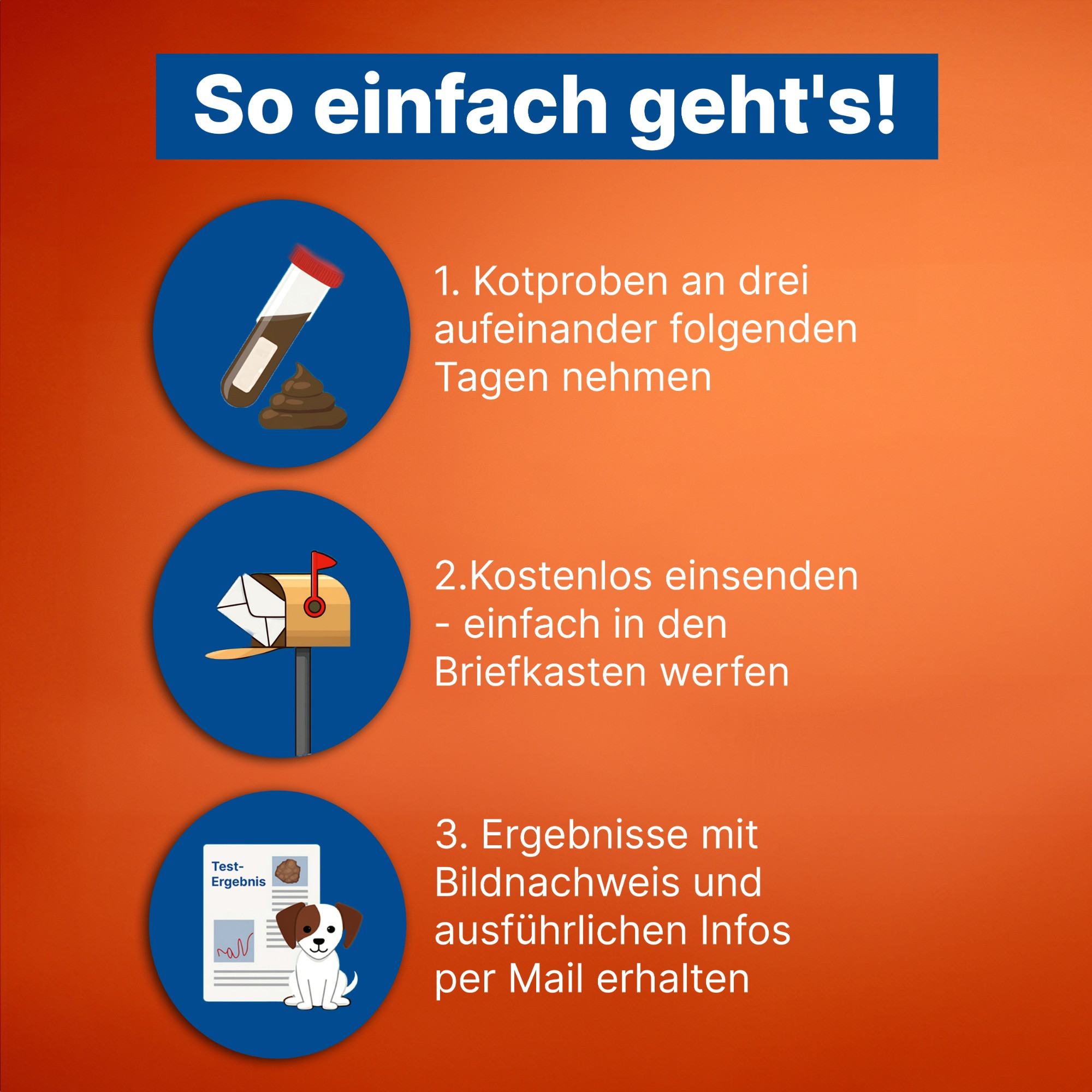 - Ergebnisse: In ca. 10 Tagen erhältst du eine detaillierte Kotanalyse mit Empfehlungen zur Entwurmung